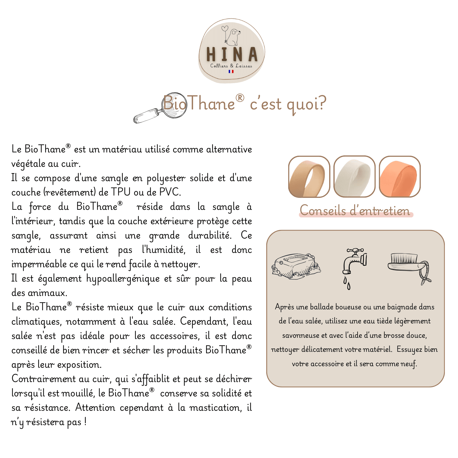 - 🧼 Facile à vivre : le Biothane® est un matériau innovant, imperméable, antibactérien, souple et ultra résistant.