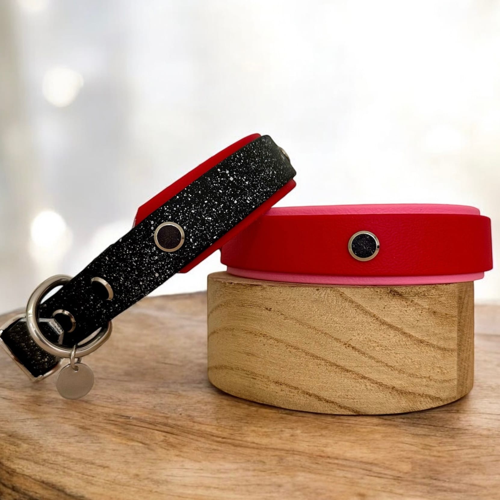 - 🌱Matériaux durables : Biothane® – alternative vegan au cuir, robuste, douce et adaptée à l’extérieur
